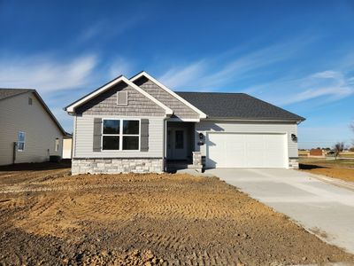 Experience refined living in this stunning new construction inspired by the Dakota floor plan. Boasting 1,900 square feet of beautifully designed space, this charming ranch offers 3 bedrooms, 2 bathrooms, and a full unfinished basement with future potential. The heart of the home is the open-concept kitchen, showcasing granite countertops, a large center island, pantry, and abundant cabinetry—perfect for everyday living and entertaining. The kitchen flows seamlessly into the dining area with a soaring cathedral ceiling and continues into the spacious living room, highlighted by a cozy fireplace. The luxurious master suite is a private retreat, featuring a spa-like bath with dual vanities, separate shower and tub, and a generous walk-in closet. The full unfinished basement is already plumbed for a future bath, offering limitless potential to expand. Enjoy the outdoor patio space for gatherings or quiet evenings under the stars.